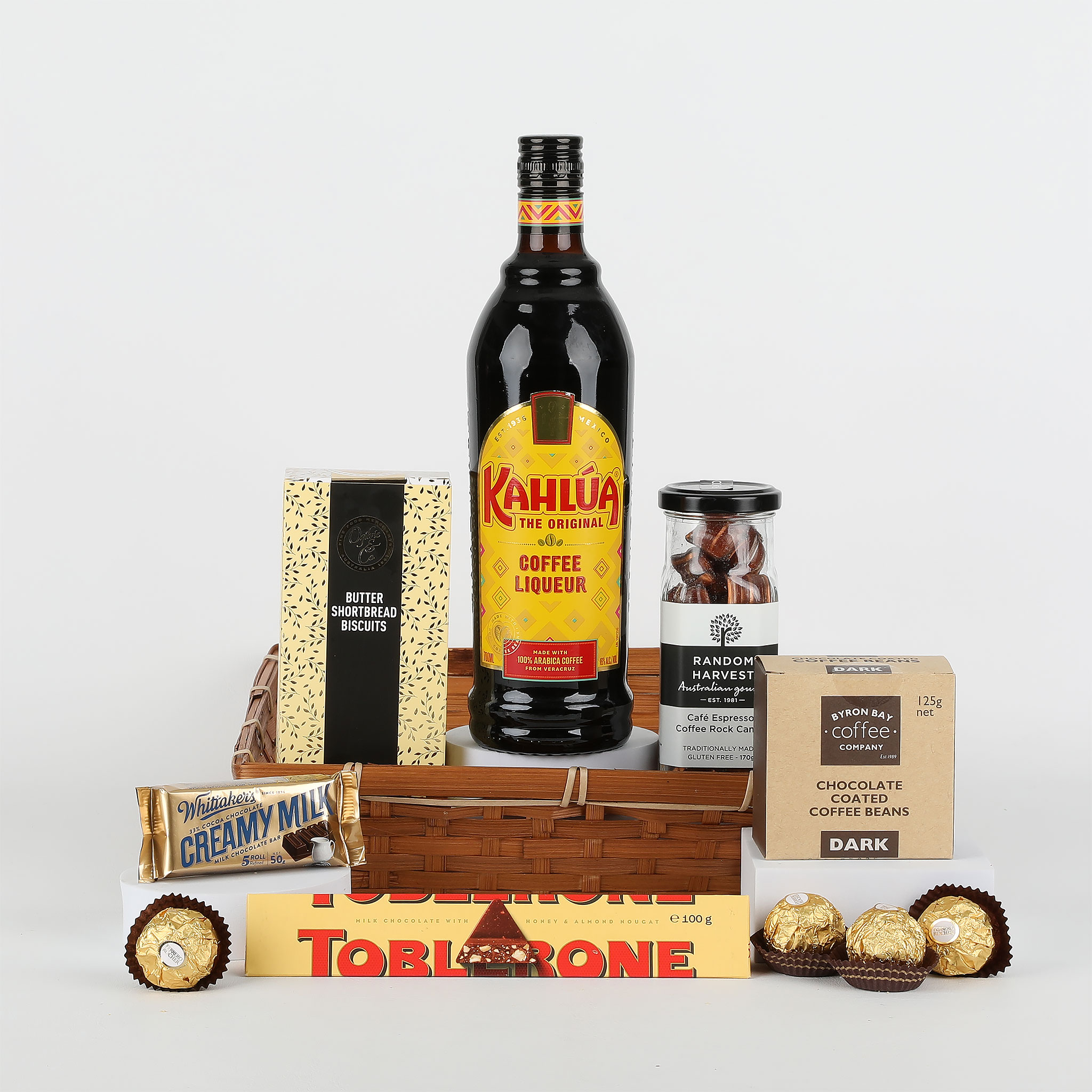 Our Kahlua Coffee Basket is the ultimate treat for coffee lovers, featuring Kahlua Coffee Liqueur alongside a selection of coffee-flavoured snacks. Beautifully presented in a wicker basket with a personalised gift card, it’s the perfect gift for any special occasion.