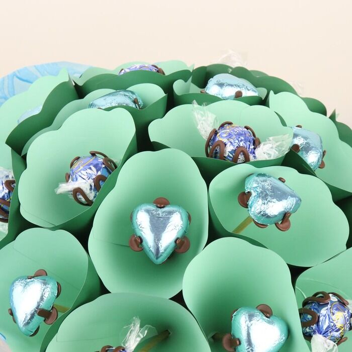 This pretty aqua posy contains a mix of solid milk chocolates and Lindt chocolates, thoughtfully curated by Edible Blooms to create a beautifully presented gift that's perfect for all occasions—from thank you gifts to baby showers.