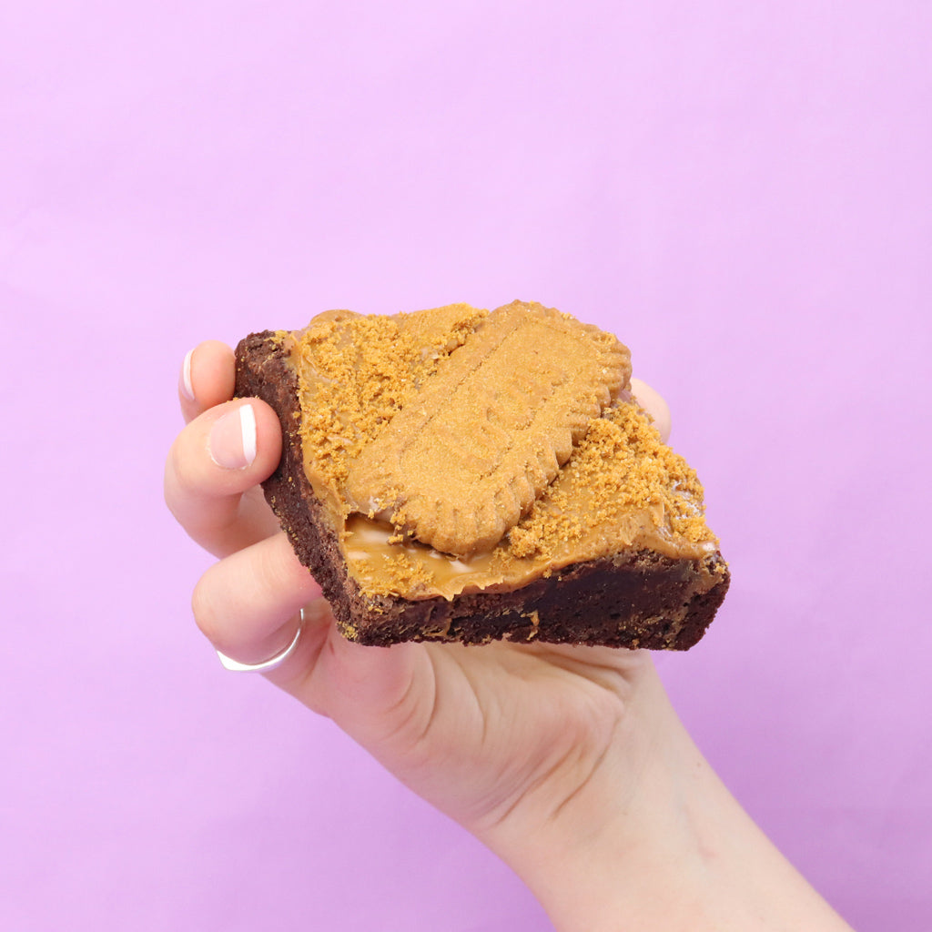 Each brownie features a Lotus Biscoff Biscuit, Biscoff Crumb, and a generous swirl of Biscoff Spread, all on a 15cm Chocolate Brownie that's pure indulgence in every bite.