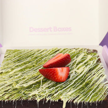 For matcha lovers, this is pure indulgence. The Dessert Boxes Matcha Brownie brings together sweet, earthy matcha flavour with a tender texture and that irresistibly rich, gooey centre their brownies are famous for. Topped with matcha and finished with a white chocolate drizzle, this 15cm chocolate brownie is a sweet treat like no other.