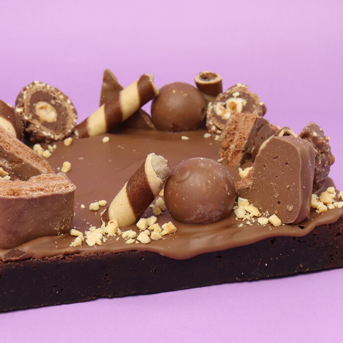This isn't just a brownie—it's a 15cm x 15cm chocolate masterpiece loaded with indulgent layers of wafers, Hazelnut Lindt, Ferrero Rocher, and Tim Tams. Every bite is rich, decadent, and seriously over-the-top in the best way possible.