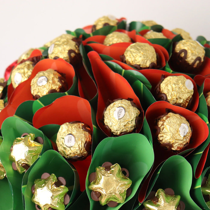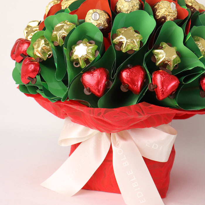 This stunning chocolate bouquet is one that's certain to 'wow' them on arrival! An abundance of Ferrero Rocher chocolates adorn a bed of chocolate hearts and stars to form a deluxe bloom that will be remembered long after it's consumed. Thoughtfully curated and beautifully presented, it makes the perfect gift for a special occasion or a special someone.