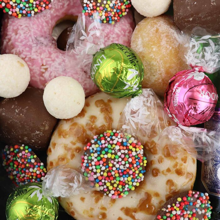 - Chocolate surprise assortment that could be FruChocs, Speckles, Chocolatier Australia milk chocolate hearts, creamy Lindor balls and more