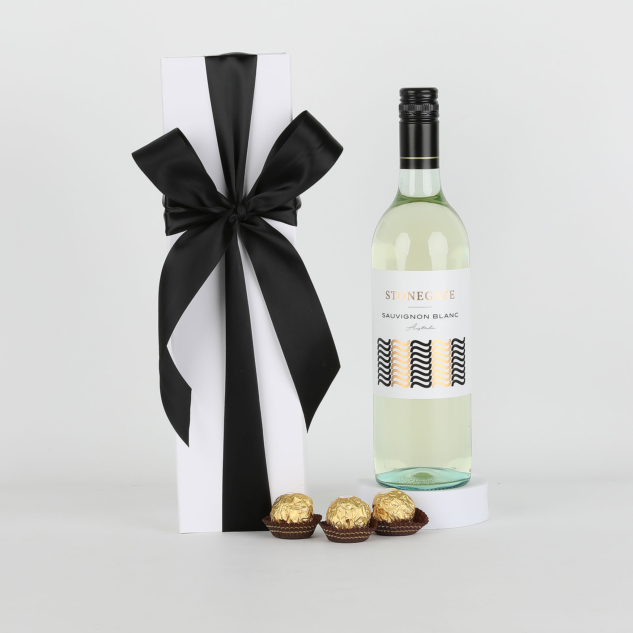 Stonegate Sauvignon Blanc with 6 Hershey’s kisses and comes delivered in a black or white gift box with a card and message of your choice.